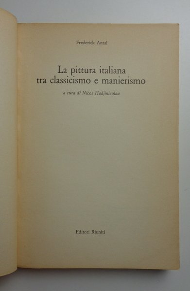 LA PITTURA ITALIANA TRA CLASSICISMO E MANIERISMO. | Libri antichi e moderni | Frederick Antal