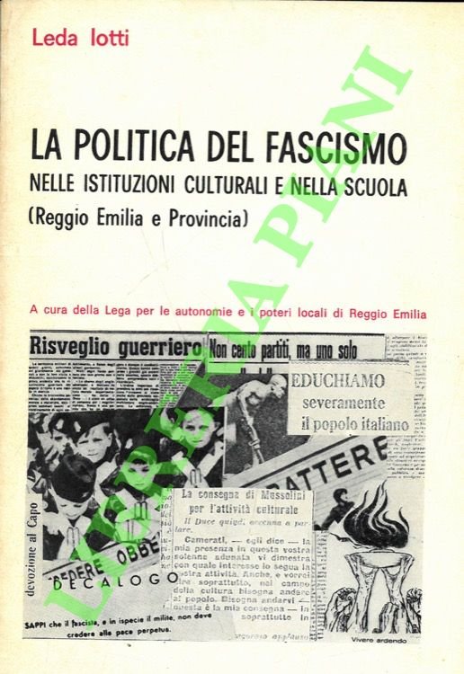 La politica del fascismo nelle istituzioni culturali e nella scuola (Reggio Emilia e Provincia). | Libri antichi e moderni | Iotti Leda