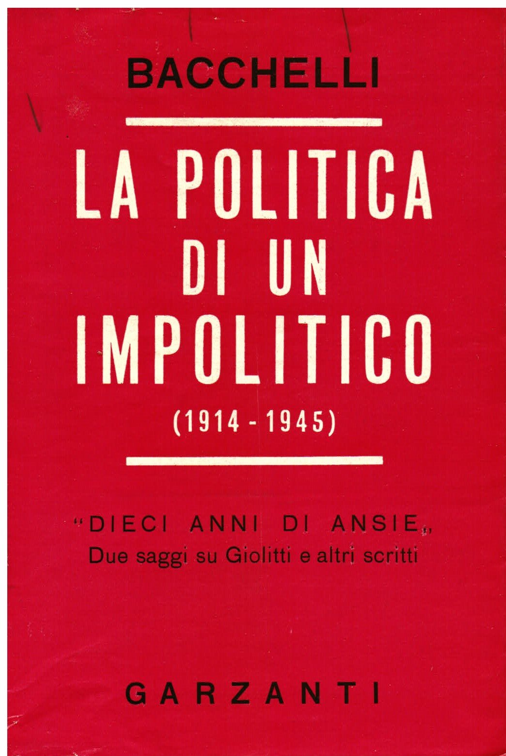 La politica di un impolitico. 1914 - 1945. 'Dieci anni di ansie'. Due saggi su Giolitti e altri scritti | Libri antichi e moderni | Bacchelli Riccardo