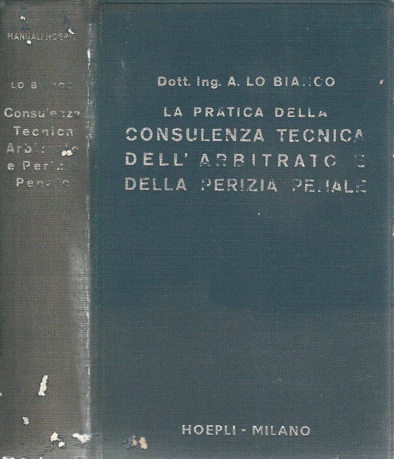 Volume rilegato in tutta tela, piatti e dorso scoloriti, segnati lungo la linea dei titoli e con piccoli fori da usura, tagli e pagine con imbrunitura, testo comunque fruibile, appartenete alla collana "Manuali Hoepli", con sentenze, verbali, moduli, perizie, ecc., prefazione dell'autore, con una nota dell'editore, numero pagine 489