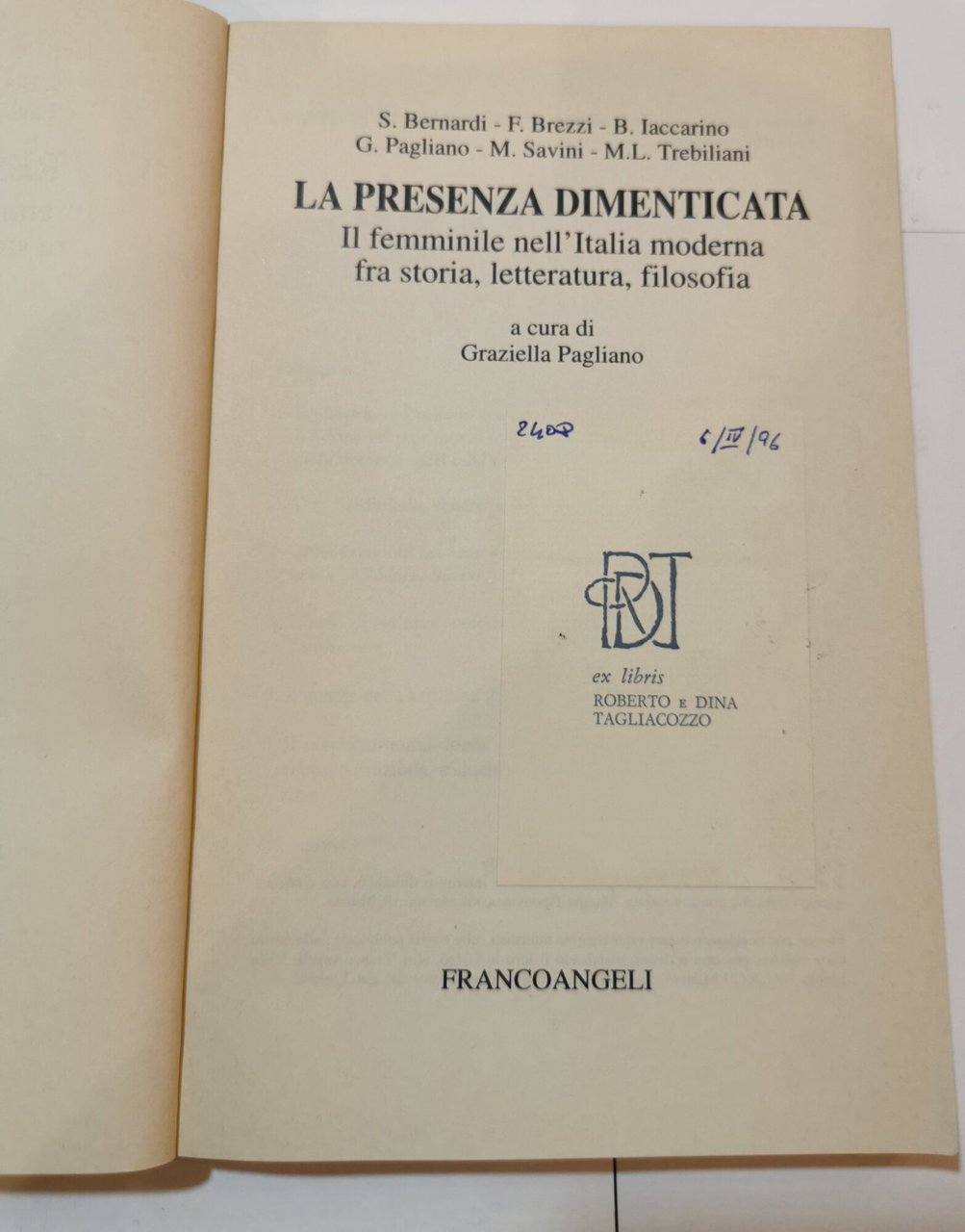 La presenza dimenticata - Il femminile nell'Italia moderna fra storia, letteratura, filosofia | Libri antichi e moderni | AA.VV. - Pagliano, Graziella ( a cura di )