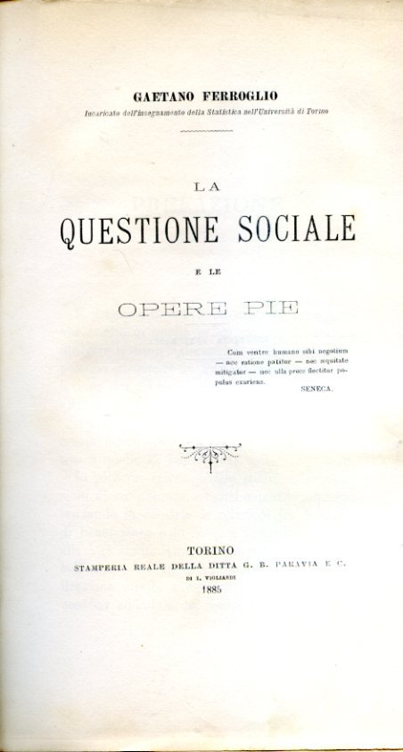 La questione sociale e le opere pie | Libri antichi e moderni | Ferroglio Gaetano