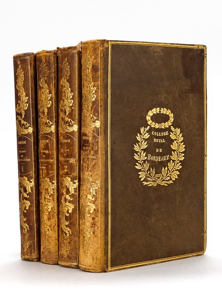 Troisième édition, 4 vol. in-8 reliure de l'époque plein veau brun, Fers de prix du Collège Royal de Bordeaux en plat, Pourrat Frères, Lefèvre, Sapia, Paris, 1841 Complet. Etat satisfaisant (dos frottés avec un accroc en coiffe, rouss.)