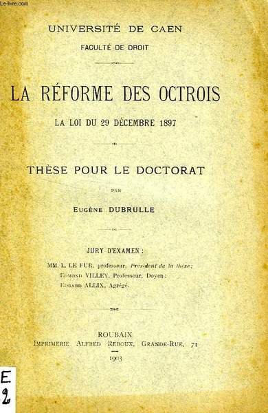 LA REFORME DES OCTROIS, LA LOI DU 29 DEC. 1897, THESE POUR LE DOCTORAT | Libri antichi e moderni | Dubrulle Eugene