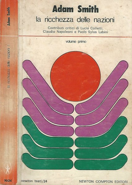 Opera incompleta, solo volume primo e numero 24 della collana Newton testi. Contributi critici di Lucio Colletti, Claudio Napoleoni, Paolo Sylos Labini, pubblicati per gentile concessione, rispettivamente, del Corriere della Sera, La Repubblica e l'Unità. Titolo originale dell'opera An Inquire into the Nature and Causes of the Wealth of Nations, traduzione di Ada Bonfirraro, I edizione. Brossura segnatadal tempo, sbiadita al dorso w con diverse bruniture. Tagli ingialliti e con piccole fioriture. Pagine anch'esse ingiallite, con qualche fioritura sparsa e qualche sottolineatura ad evidenziatore giallo. In Appendice tavole cronologiche dei prezzi del grano. Numero pagine 314.