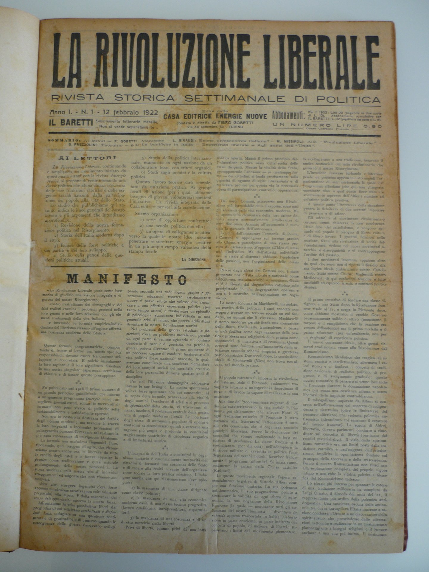 La Rivoluzione Liberale. Rivista storica settimanale di politica. Diretta da Piero Gobetti | Libri antichi e moderni | Gobetti Piero