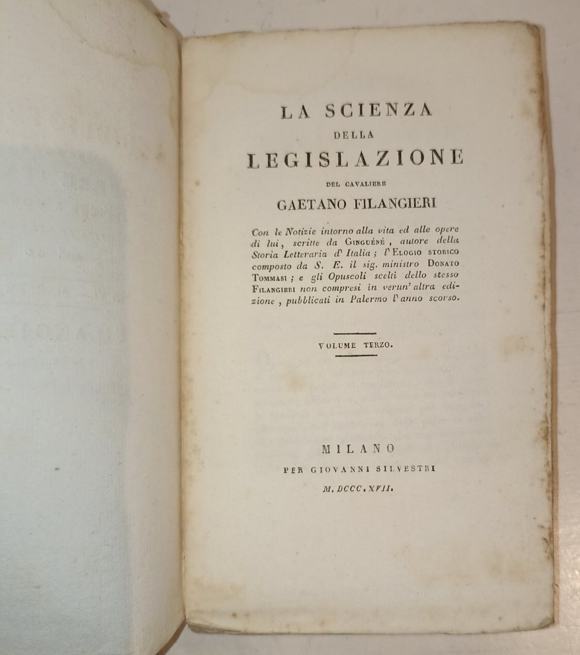 La scienza della legislazione vol.III | Libri antichi e moderni | Filangieri, Gaetano