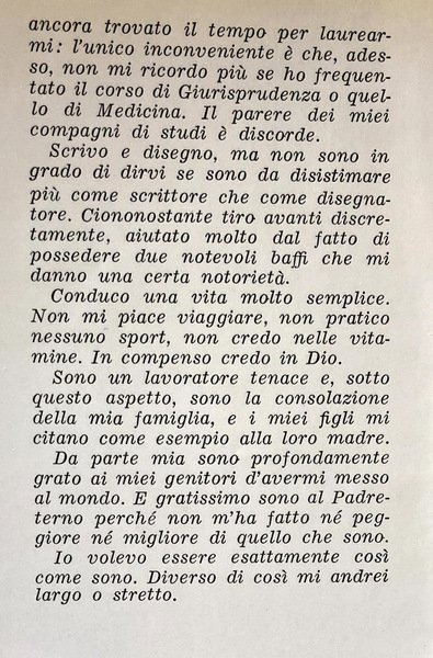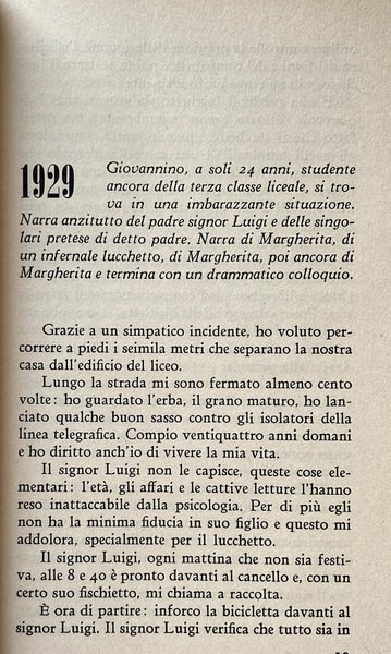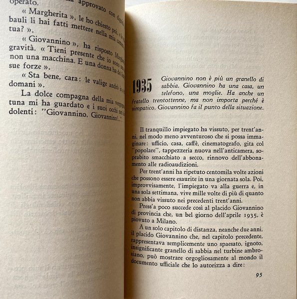 Soggetti: Narrativa italiana, Ottocento, Novecento, Letteratura, Biografie, Memorie, Diari, Romanzi autobiografici, Racconti biografici, Scrittori italiani del XX secolo, Prime edizioni, Libri Vintage Fuori catalogo, Milano, Nord, Viaggio, Famiglia, Moglie, Amore, Infanzia, Fascismo, Faccetta nera, Educazione, Formazione, Gioventù, Matrimonio, Comunismo, Candido, Scrittura, Storie, Educazione sessuale, Gramigna, Amore, Malinconia, Vita, Michelone, Corsaro nero, Borghesia italiana, Anni Quaranta, Anni Venti, Anni Trenta, Sarcasmo, Ironia, Umorismo, Comunisti, Anticomunismo, Burocrazia, Politica, Società italiana, Classici, Borghese, Azienda Tramviaria, Casa editrice, Redazione, Giornalismo, Matrimonio, Nozze, Pudore, Sentimenti, Diario, Italian fiction, 19th century, 20th century, Literature, Biographies, Memories, Diaries, Autobiographical novels, Biographical stories, Italian writers of the 20th century, First editions, Books Out of print, Milan, North, Travel, Family, Wife, Love, Childhood, Fascism, Black face, Education, Training, Youth, Marriage, Communism, Candid, Writing, Stories, Sex education, Gramigna, Love, Melancholy, Life, Black corsair, Italian bourgeoisie, Forties, Twenties, Thirties, Sarcasm, Irony, Humor, Communists, Anticommunism, Bureaucracy, Politics, Italian society, Classics, Bourgeois, Tramway Company, Publishing house, Editorial, Journalism, Marriage, Wedding, Modesty, Feelings, Diary
