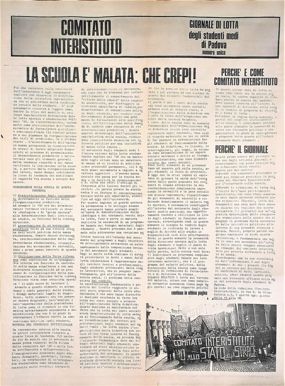 La scuola è malata: che crepi! Giornale di lotta degli studenti medi di Padova. Numero unico