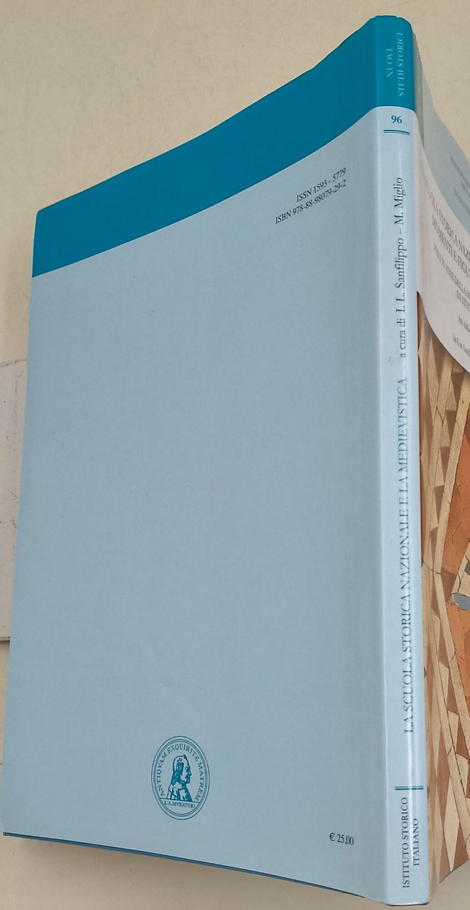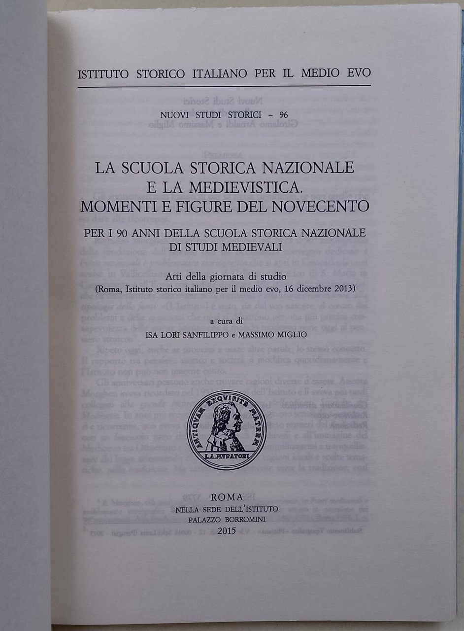In 8' gr., br. ed. con sovracx., pp. 168, intonso; per i 90 anni della Scuola storica nazionale di Studi Medievali-Atti della giornata di Studio.