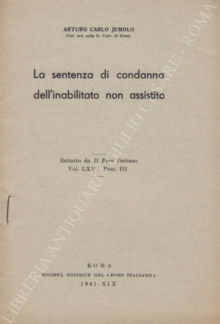 La sentenza di condanna dell'inabilitato non assistito | Libri antichi e moderni | Jemolo Arturo Carlo (1891-1981)