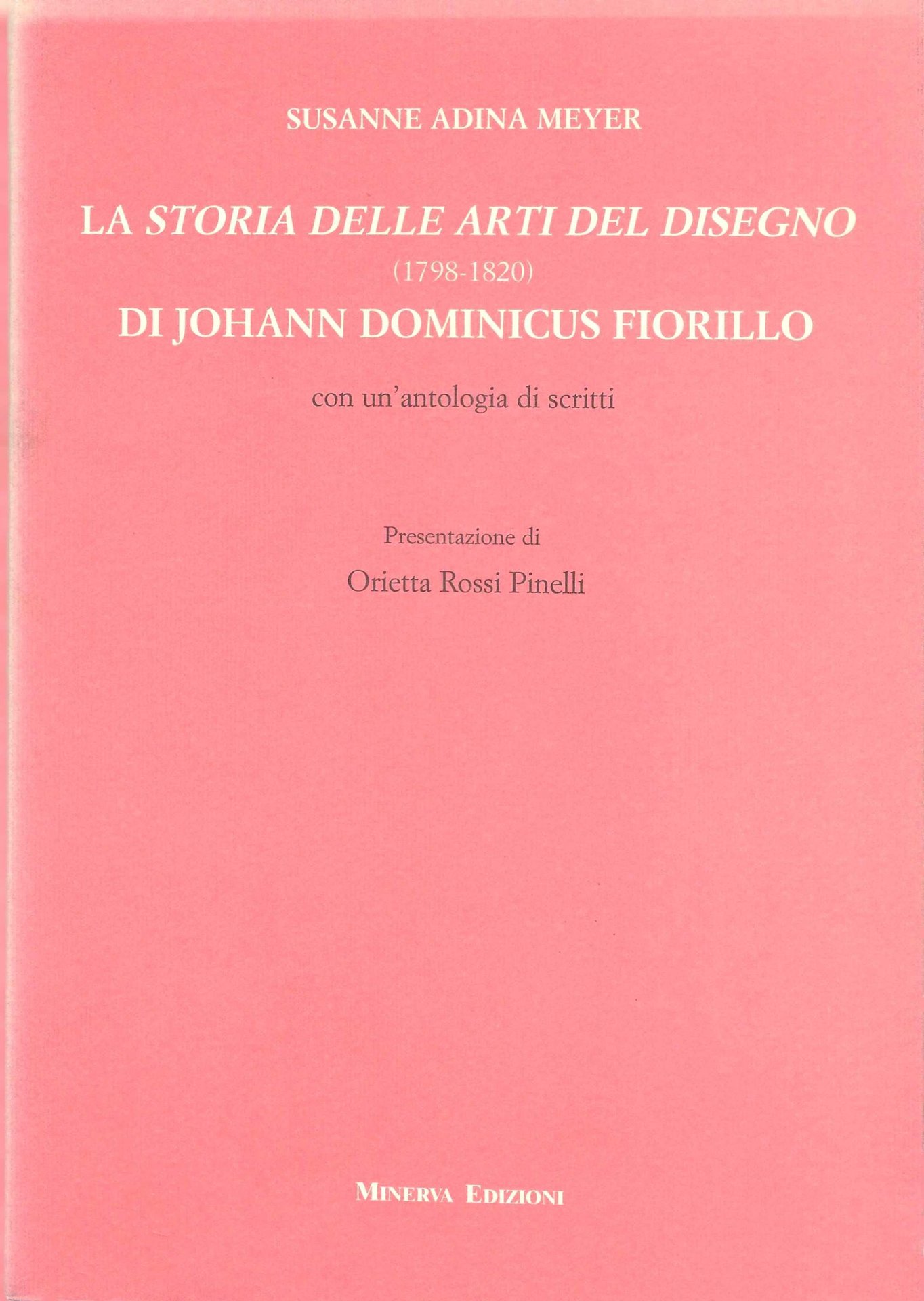 Meyer Susanne Adina, La storia delle arti del disegno di Johann Dominicus Fiorillo, Minerva, 2001 .In-8 (Cm 24,4x16,8), pp. 352, brossura edit. con alette. Collana di Saggi Studi e Ricerche I figli di Mercurio. Intonso. OTTIMO