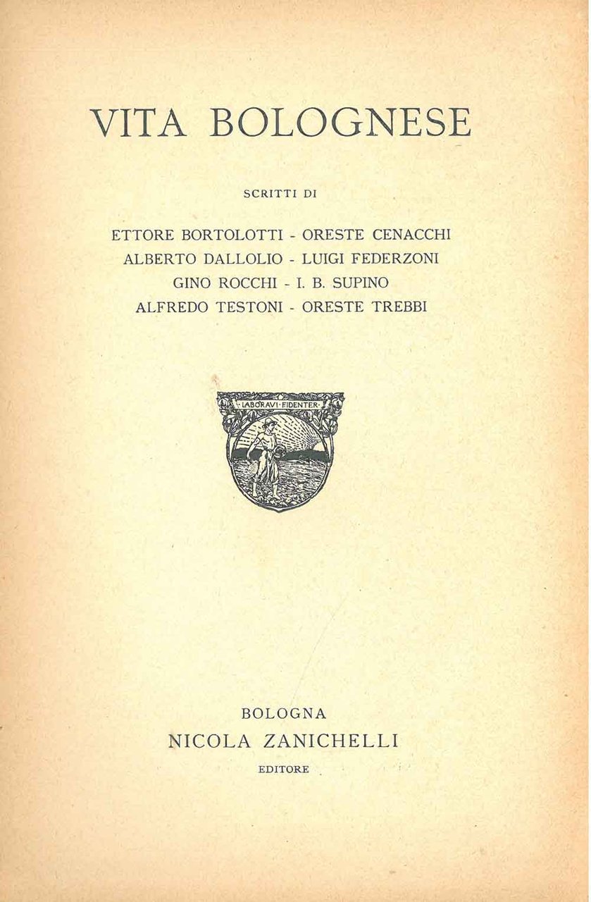 La strenna delle colonie scolastiche estive bolognesi. Anno XXX - Gennaio MCMXXVII. Vita bolognese, scritti di Ettore Bortolotti, Oreste Cenacchi, Alberto Dallolio, Luigi Federzoni, Luigi Rava, Gino Rocchi, I. B. Supino, Alfredo Testoni, Oreste Trebbi