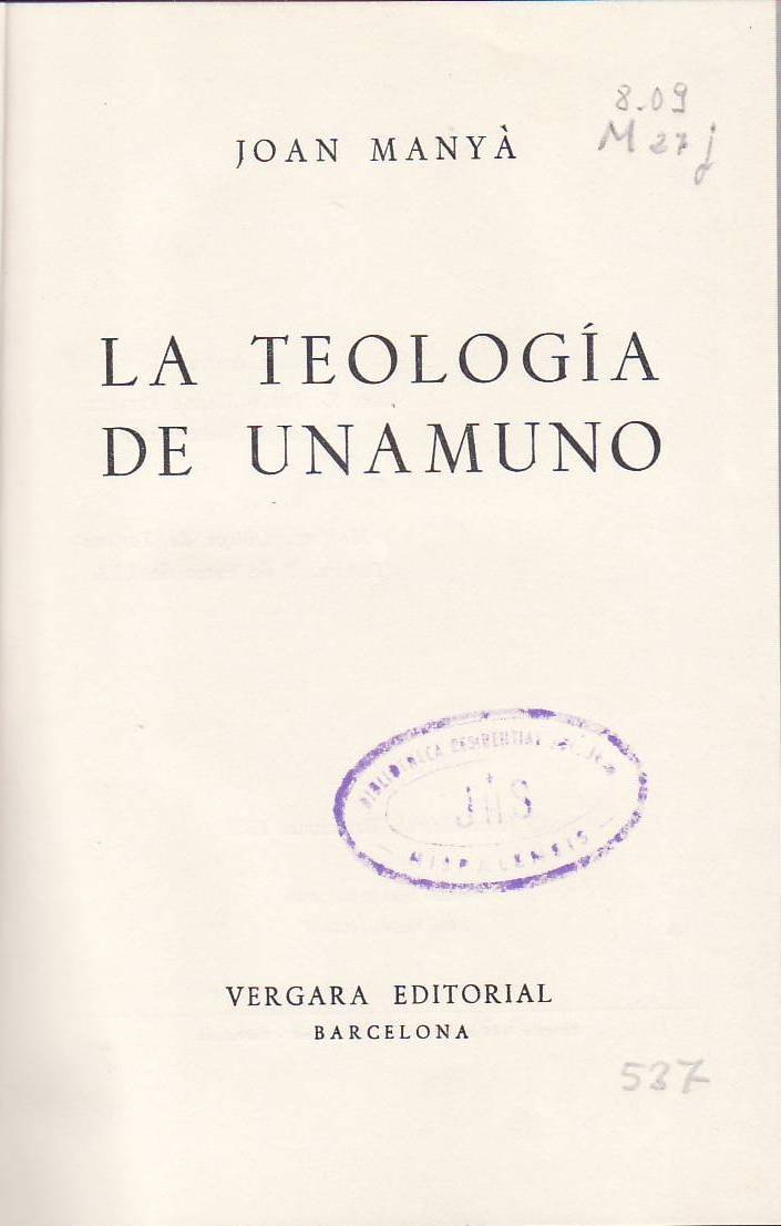 La teología de Unamuno. | Libri antichi e moderni | Manyà, Joan.