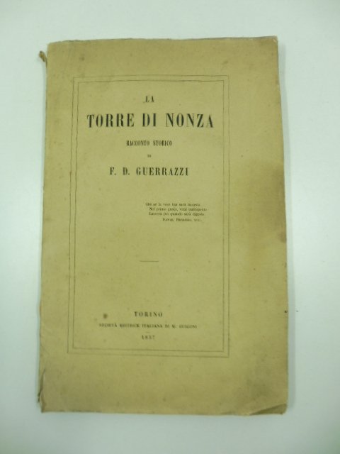 La torre di Nonza. Racconto storico | Libri antichi e moderni | Guerrazzi F. D.