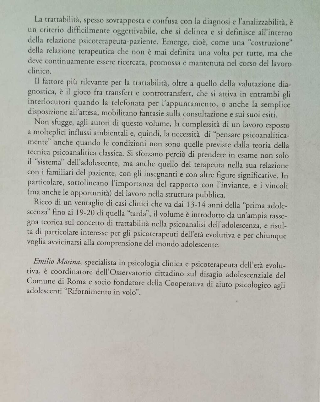 La trattabilità in adolescenza. Problemi nella psicoterapia psicoanalitica