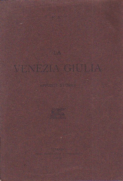 In-8°, pp. 77, (1), brossura editoriale marrone. Ingialliture, un timbro di privata appartenenza e una firma di privato possesso. Cenni sulla storia della Venezia Giulia dalle origini sino alla fine della Prima Guerra Mondiale e alle rivendicazioni su Fiume. Bibliografia finale. Il nome dell'autore è indicato con le sole iniziali. L'Egidi (Viterbo, 1872-Courmayeur, 1929) fu soprattutto grande storico del principato sabaudo nei secoli XV e XVI; fu socio della Deputazione di Storia Patria e professore di storia nelle Università di Messina e Torino.