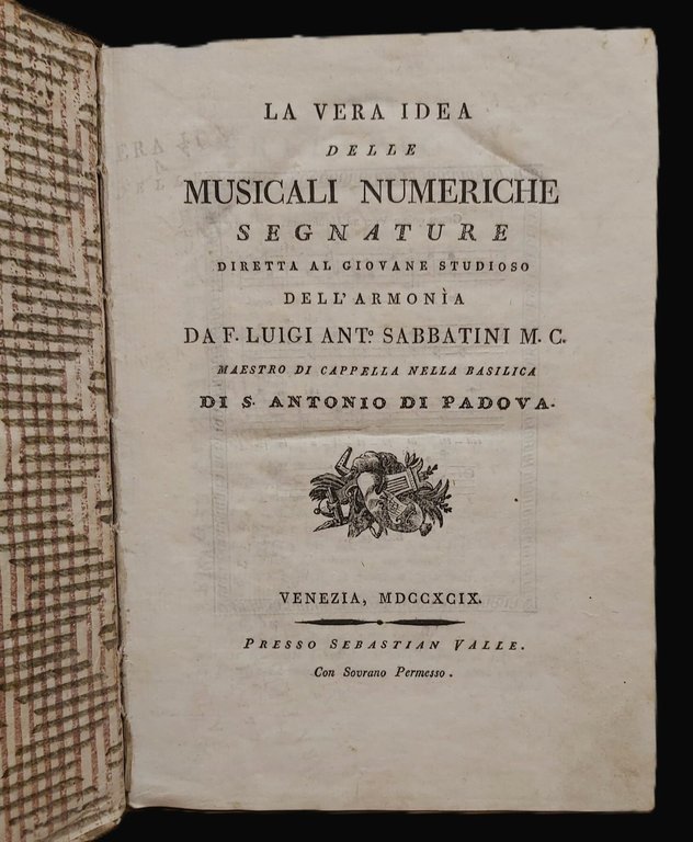 LA VERA IDEA delle Musicali Numeriche segnature. Diretta al giovane studioso dell’Armonia. | Libri antichi e moderni | Sabbatini Luigi Antonio.