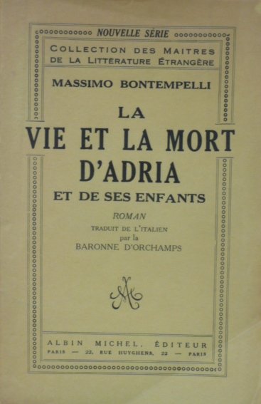 La vie et la mort d'Adria et de ses enfants. Roman traduit de l'Italien par la Baronne d'Orchamps | Libri antichi e moderni | Bontempelli Massimo