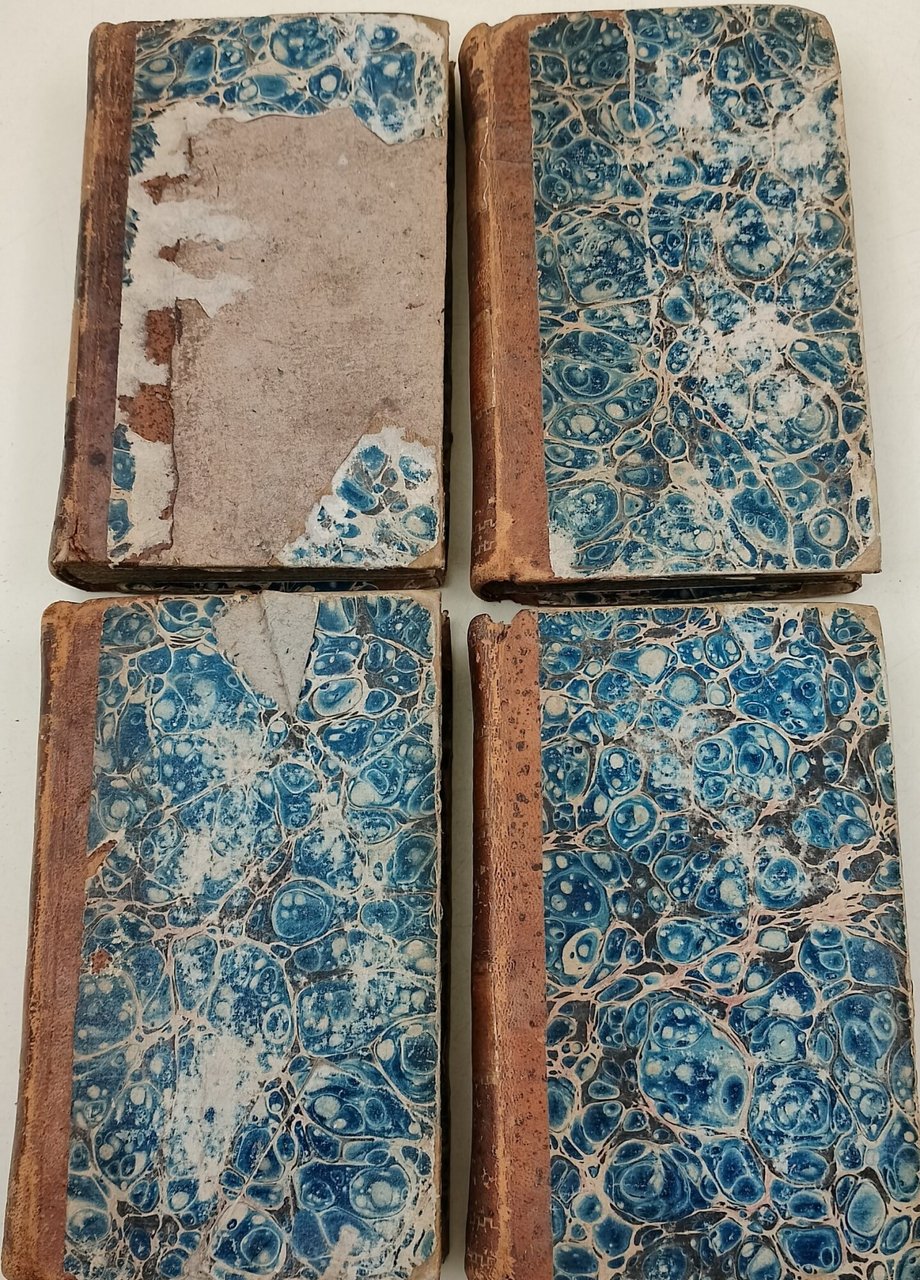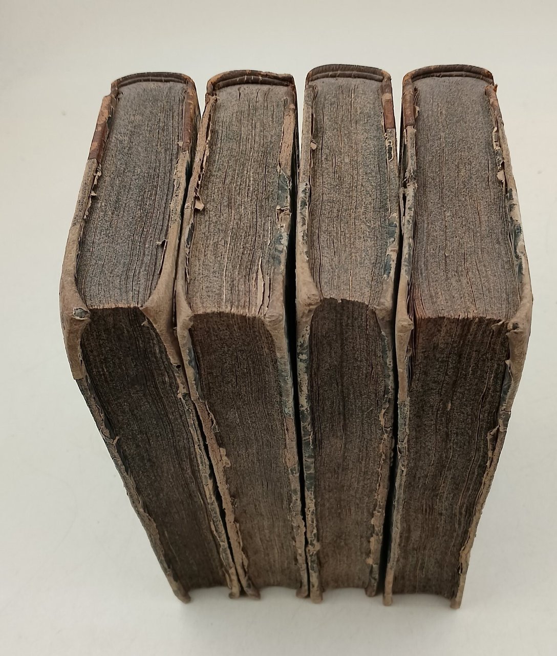 4 voll. discontinui in 16', mz. pelle, piatti marm., pp. 358+356+357+358; abrasioni ai dorsi e ai margini dei piatti, angoli usurati, mancanza della carta al piatto ant. del IV vol., e parzialmente al V, interni in buono stato, alcune pieghe agli angoli e rare sottolineature o segni a margine n.t., note musicali alla prima bianca e scarabocchi a matita alle ultime del IV vol., segni d'uso e del tempo diffusi, ***Due to bureaucratic reasons, books dated over 70 years old cannot be immediately exported, please contact us before placing the order.***