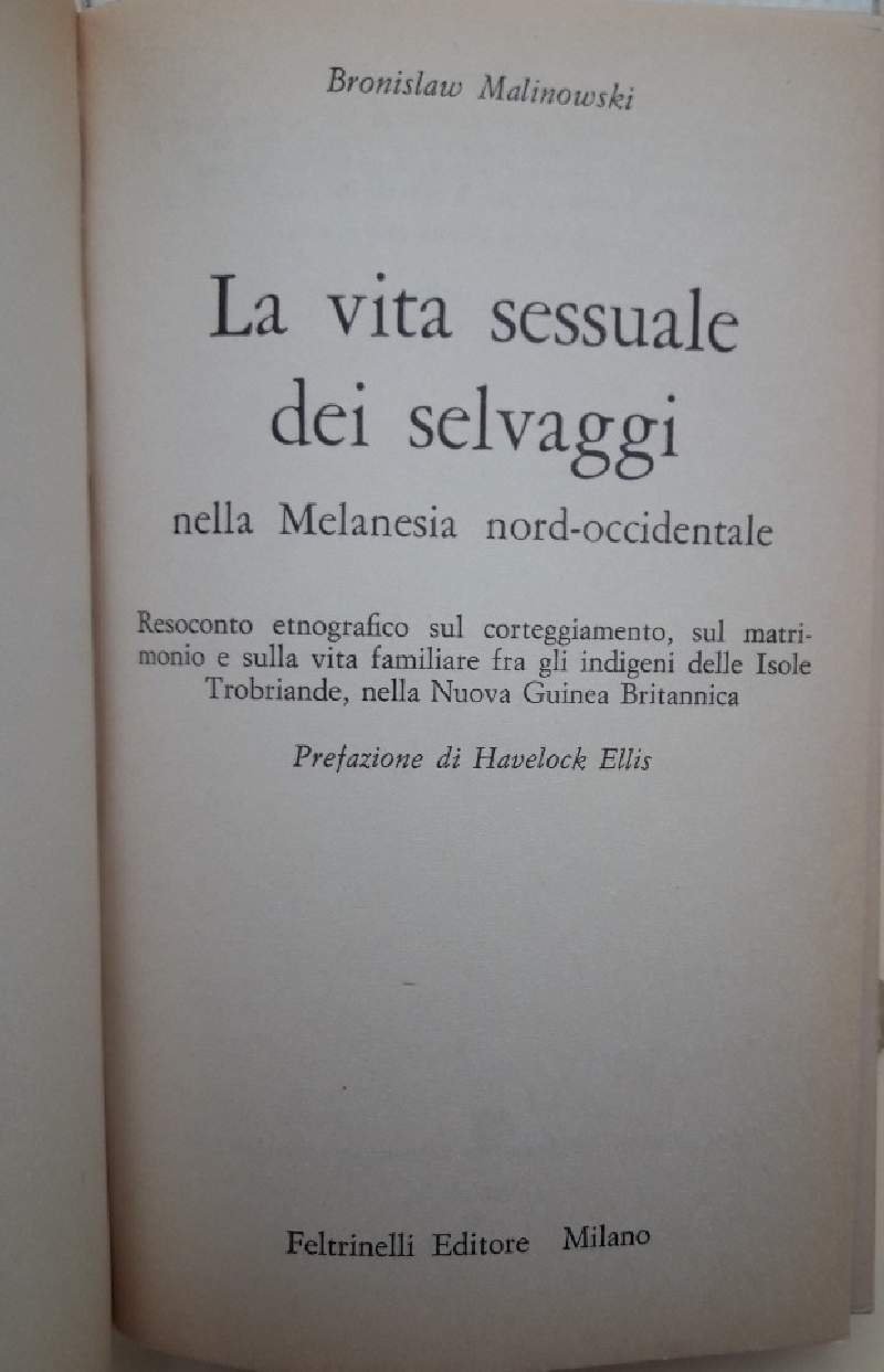 LA VITA SESSUALE DEI SELVAGGI NELLA MELANESIA NORD-OCCIDENTALE(1968) | Libri antichi e moderni | Malinowski, Bronislaw