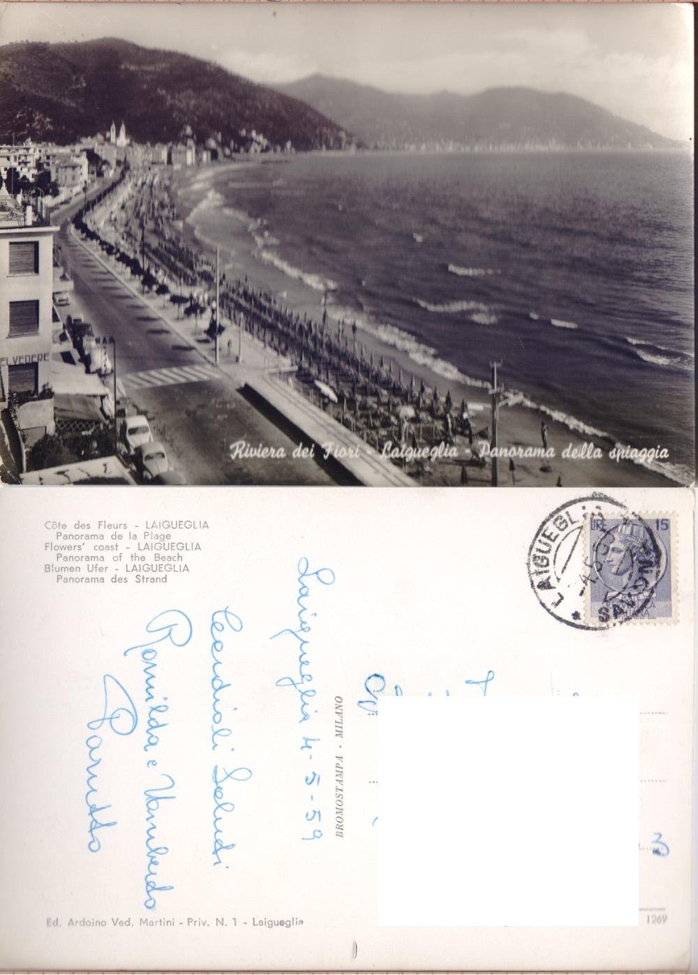 Laigueglia. Panorama della spiaggia. Viaggiata 1959 | Libri antichi e moderni | ,
