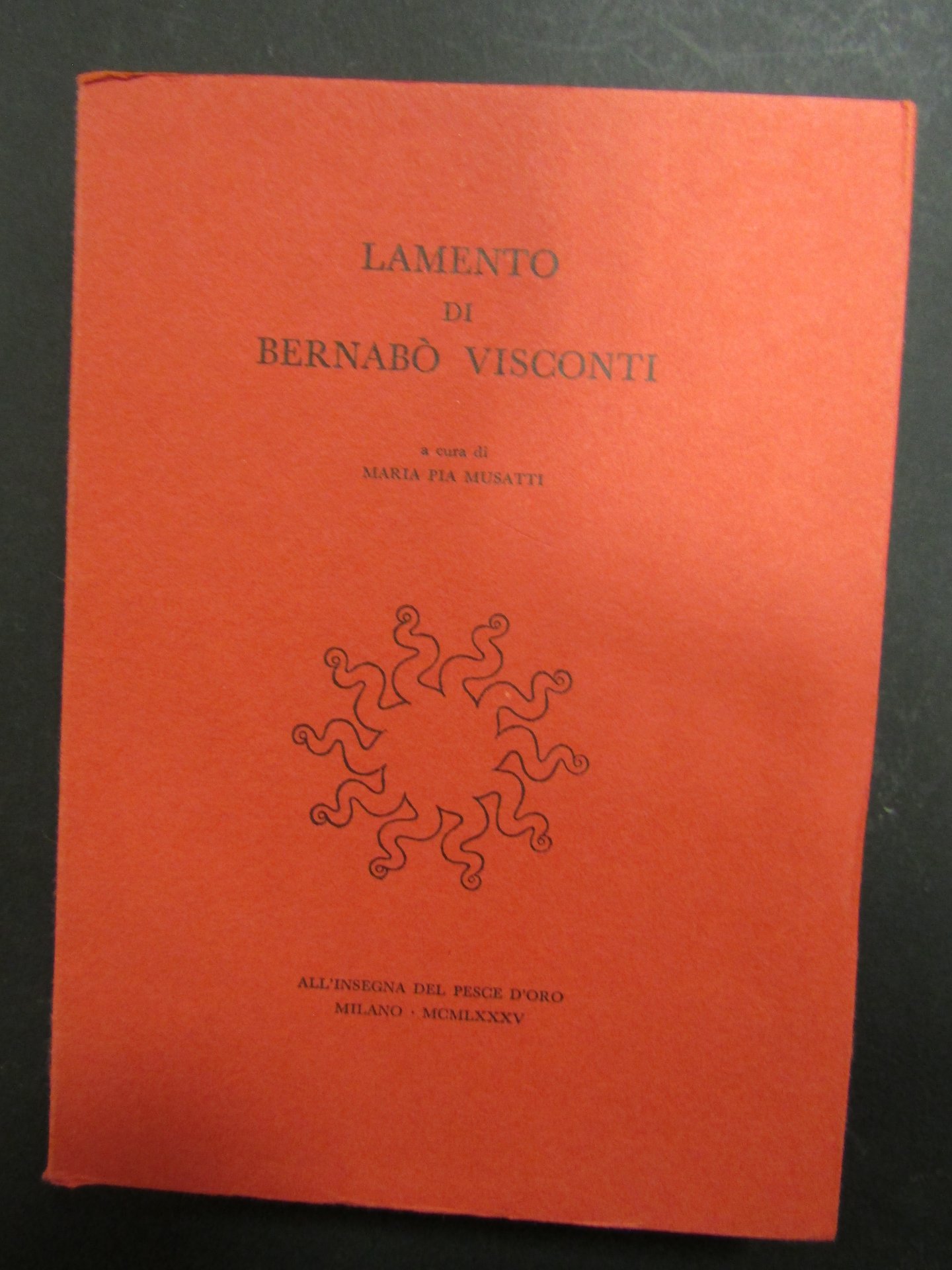 Lamento di Bernabò Visconti. a cura di Maria Pia Musatti. Scheiwiller - All'insegna del pesce d'oro. 1985
