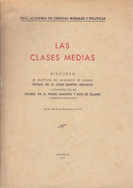 Las clases medias. Discurso de recepción del académico de número León Martín-Granizo y contestación de Pedro Sangro y Ros de Olano