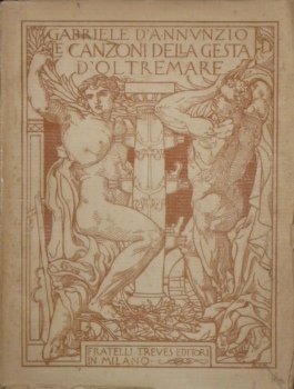 1496618689 In-8°, pp. (8), 212, (2), brossura editoriale con illustrazione xilografica in rosso di Adolfo De Carolis. Frontespizio xilografico figurato; tregi xilografici istoriati dallo stesso De Carolis n.t. Ottimo esemplare in barbe, protetto da velina. Seconda edizione, ma prima edizione posta in commercio, di soli due giorni posteriore all'originale. La prima edizione delle Canzoni della gesta d'oltremare 'fu sequestrata il 24 gennaio, a motivo di alcune terzine della Canzone dei Dardanelli, che, a detta dell'Autorità politica, suonano 'ingiuriose verso una potenza alleata e verso il suo Sovrano' [l'Austria e Francesco Giuseppe]. In questa nuova edizione, le suddette terzine sono soppresse, e surrogate da puntini.' (nota editoriale apposta al foglio di occhietto). A causa del suddetto sequestro, ordinato da Giolitti, l'edizione originale è 'ovviamente introvabile, senza quotazioni disponibili' (Gambetti / Vezzosi). I famosi versi sostituiti sono alle pp. 113-114. Guabello, 216 (lunghe e puntuali annotazioni cui rinviamo). De Medici, n. 77. Vecchioni. n. 42a. Gambetti / Vezzosi, p. 255: 'Seconda edizione (ma prima in commercio) uscita dopo 2 giorni, con i 14 versi oggetto del sequestro sostituiti da puntini, con una nota aggiunta dall'A. D'Annunzio dopo aver rifiutato dall'editore Sommaruga un'offerta di 500 lire per ogni volume sul quale avesse riportato a mano i versi censurati, li aggiunse in inchiostro rosso solo su una ventina di copie dedicate ad alcuni amici'.