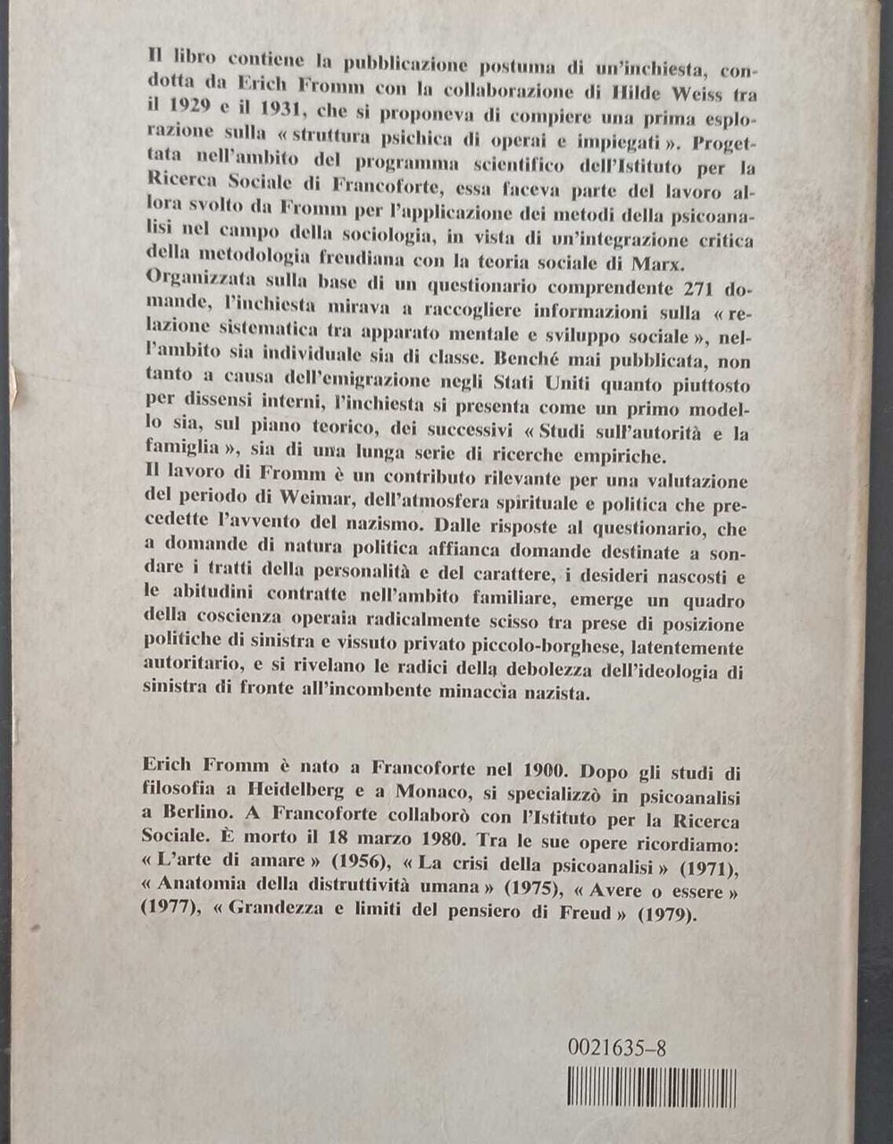 LAVORO E SOCIETÀ AGLI ALBORI DEL TERZO REICH | Libri antichi e moderni | Erich Fromm, ,Erich Fromm