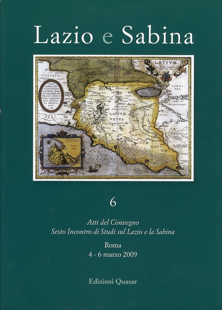 Atti del Convegno. Sesto Incontro di Studi sul Lazio e la Sabina, Roma, 4 marzo - 6 marzo 2009. A cura di Ghini G. Roma, 2010; br., pp. 508, ill. b/n, cm 21x30. (Lavori e studi della Soprintendenza per i Beni Archeologici del Lazio. 6).
