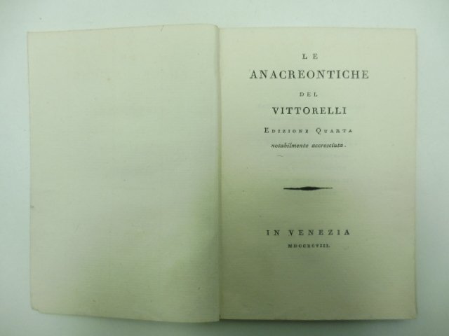 Le anacreontiche del Vittorelli. Edizione quarta notabilmente accresciuta | Libri antichi e moderni | Vittorelli Jacopo