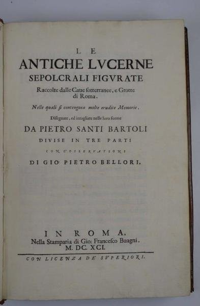 Le antiche lucerne sepolcrali figurate raccolte dalle Cave sotterranee, e Grotte di Roma. Nelle quali si contengono molte erudite Memorie. con l'osservazioni di Gio. Pietro Bellori.