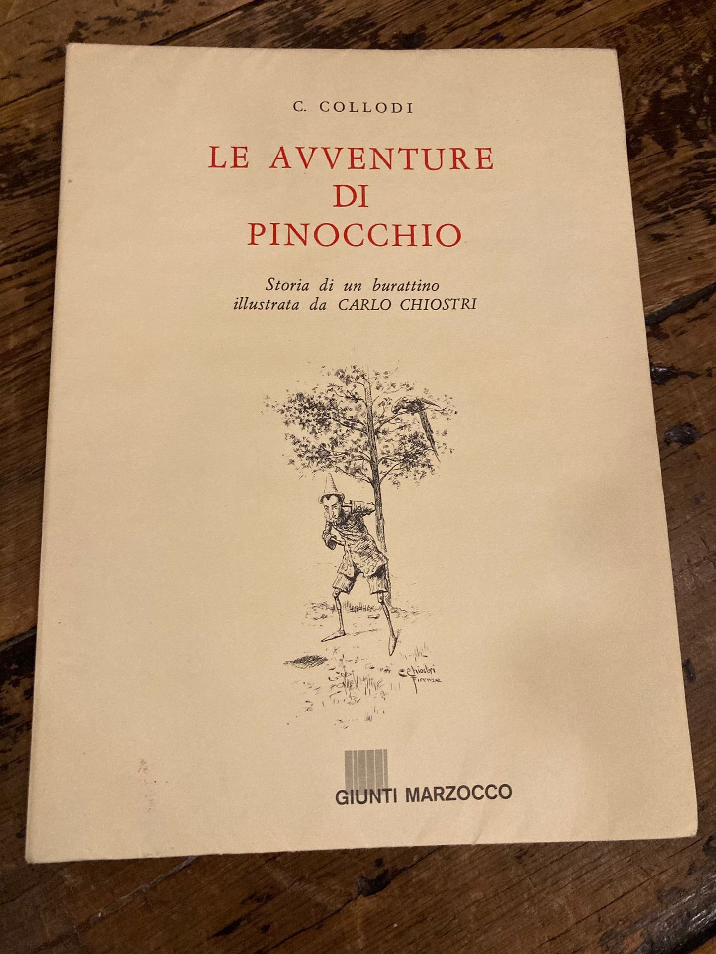 In-8° (21x15 cm), pp. (4) 207 (1), brossura incamiciata editoriale con titoli in rosso e nero al dorso e al piatto anteriore figurato con disegno b/n. Figure b/n nel testo. Più che buon esemplare. Ristampa della prima edizione illustrata da Carlo Chiostri (1901) una delle figurazioni del primo Novecento del capolavoro collodiano più aderenti al testo. Qui sono riprodotti i disegni originali di Chiostri e non i legni di Adolfo Bongini che tradusse graficamente gli acquerelli originali con necessarie mediazioni.