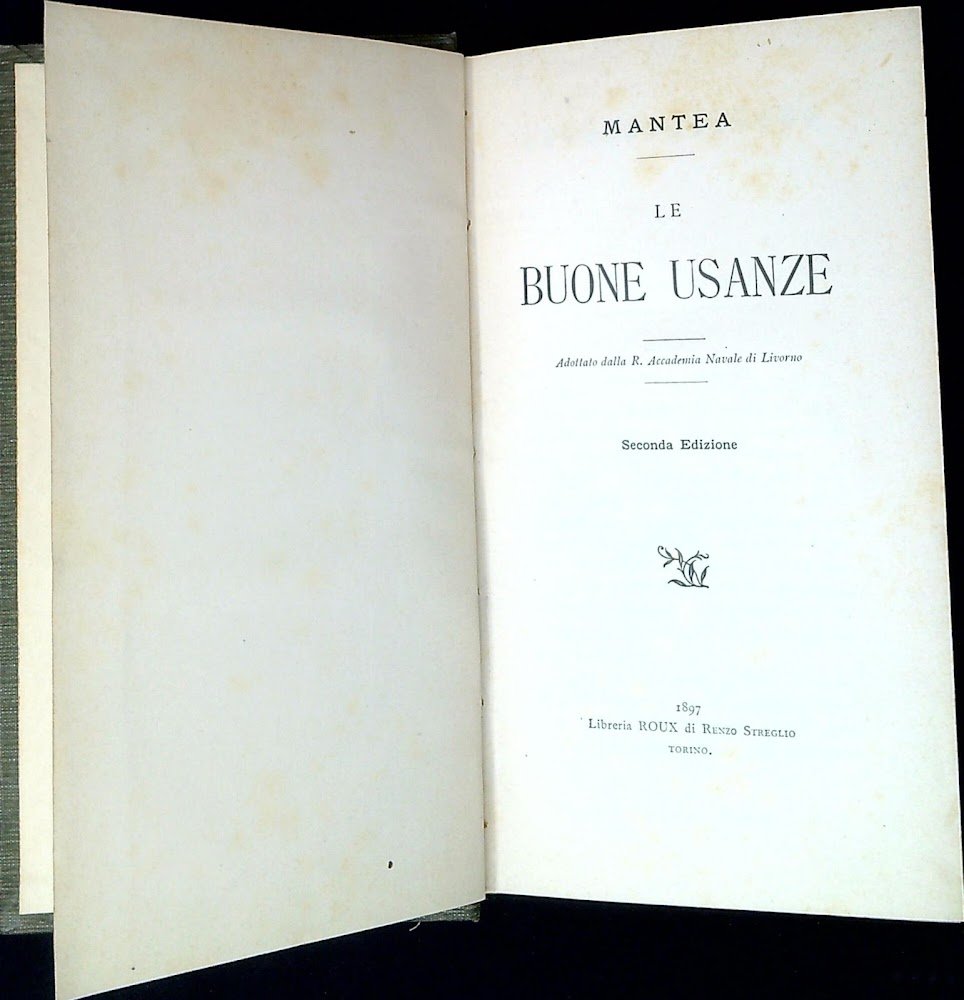 Sobrero, Gina (Mantea) Le buone usanze. Torino, Libr. Roux di Renzo Streglio Edit. 1897, In sedicesimo; p. VJ, 250 (61941)