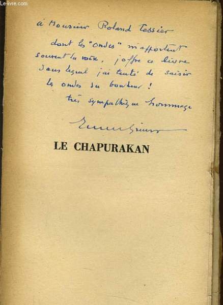 1942. In-12. Broch�. Etat d'usage, Couv. l�g�rement pass�e, Dos ab�m�, Quelques rousseurs. 312 pages. Manque 2e plat de couverture et manque dos. 1er plat de couverture d�tach� de l'ouvrage. . . . Classification Dewey : 97.2-D�dicace, envoi