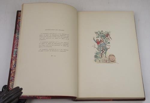Cm. 22,5, pp. (8) 193 (7). Frontespizio in rosso e nero con vignetta centrale e 46 illustrazioni a colori entro e fuori testo (protette da velina). Leg. coeva in mezza pelle con punte, dorso a nervi con titoli in oro. Taglio di testa dorato. Bross. orig. ill. in cromolitografia conservata. Perfetta conservazione. Bell'edizione in tiratura limitata di 225 esemplari numerati (ns. n. 207) stampati su "Papier du Japon". Cfr. Vicaire II, 758-9.