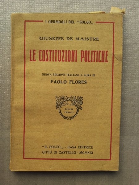 LE COSTITUZIONI POLITICHE. | Libri antichi e moderni | Giuseppe De Maistre