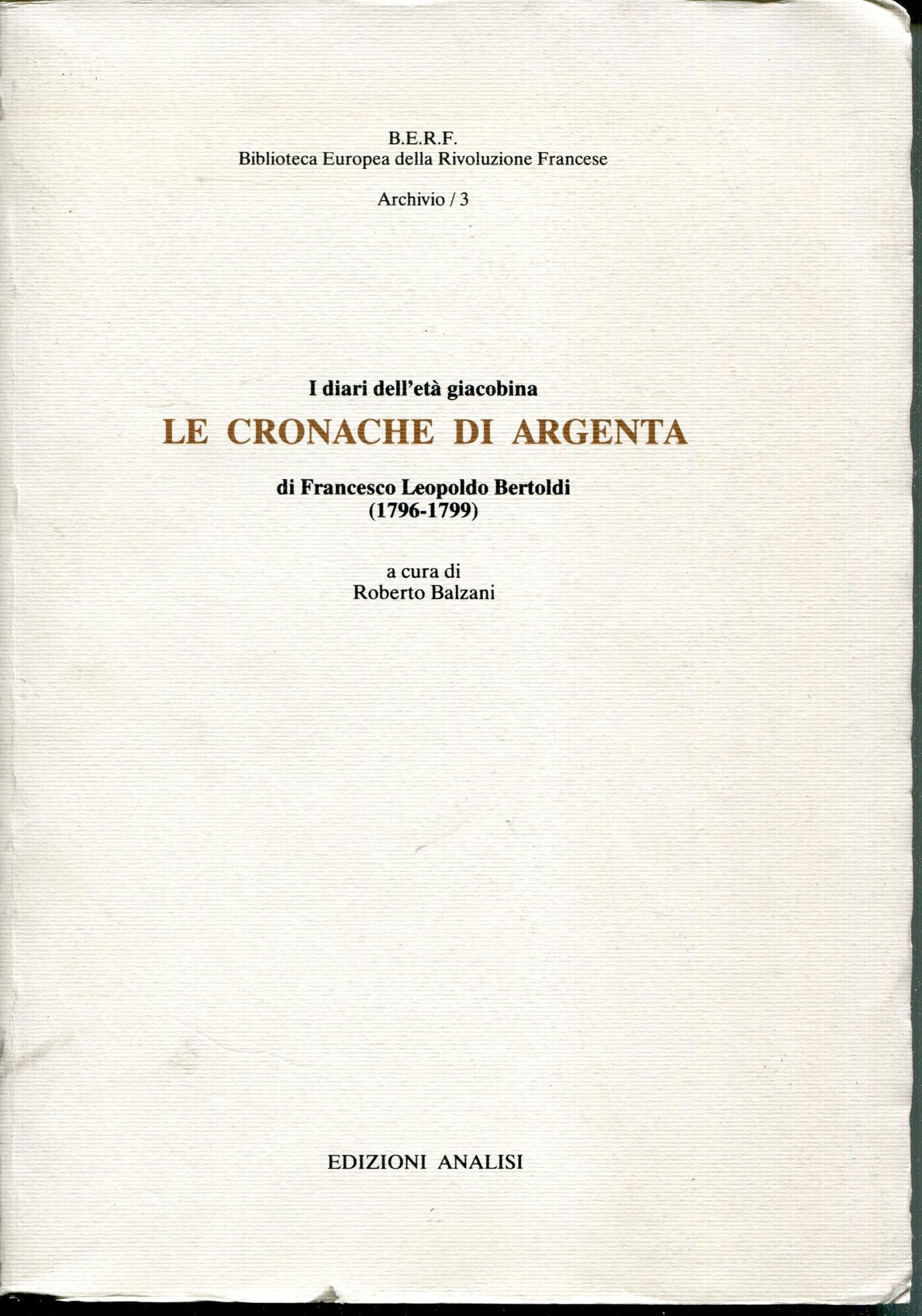 Le cronache di Argenta : (1796-1799); a cura di Roberto Balzani | Libri antichi e moderni | Bertoldi, Francesco Leopoldo, ,Bertoldi, Francesco Leopoldo