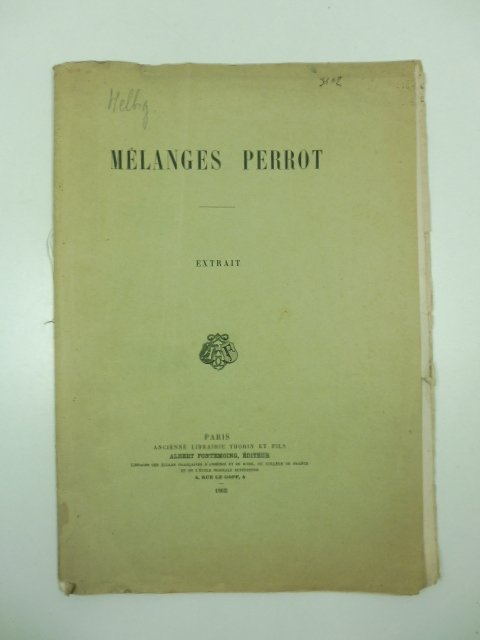Le currus du roi romain. Melanges perrot. Extrait | Libri antichi e moderni | Helbig. W.
