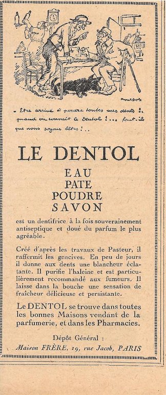 Le Dentol. Eau, pate, poudre, savon. Advertising 1926