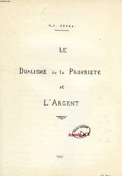 LE DUALISME DE LA PROPRIETE ET L'ARGENT | Libri antichi e moderni | Serra W. G.