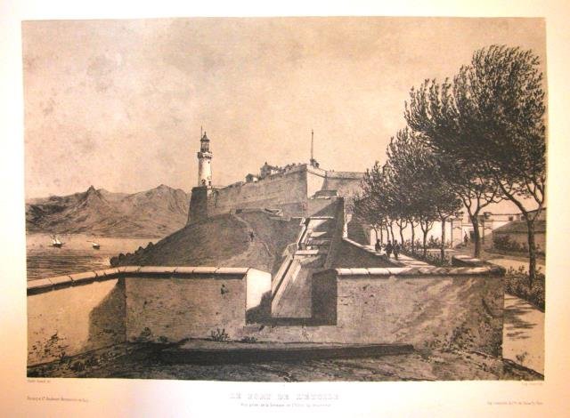 LE FORT DE L'ETOILE (Isola d'Elba). Vue prise de la Terrasse de l'Hotel du Gouverneur. Riproduzione tratta dall'album "L'Ile d'Elbe" di André Durand. | Libri antichi e moderni |