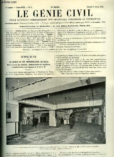 Le génie civil tome XCIX n° 6 - Le chemin de fer Métropolitain de Paris, état actuel du réseau, extension en banlieue, construction des lignes n°8 et n°9 par Jean Ott, VIe session de la conférence internationale des grands réseaux électriques a haute | Libri antichi e moderni | Collectif