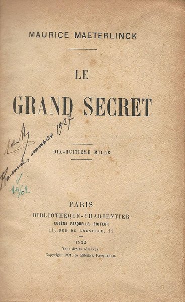 LE GRAND SECRET | Libri antichi e moderni | Maurice Maeterlinck