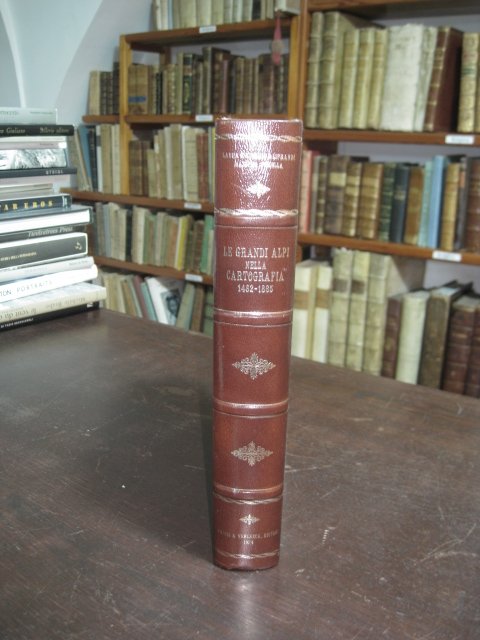 In-4°, pp. 472, legatura m. pelle con titolo, filetti e fregi in oro al dorso. Piatti in tela grezza. Illustrato da 130 carte topografiche, di cui 28 a colori e 14 su doppia pag., e 70 figure in nero ed a colori. Testo su tre colonne in italiano, inglese e francese. Annotazioni a matita al risguardo. Bell'esemplare. Prima edizione di questa ricercata e referenziale opera sulla cartografia delle Alpi. Perret, 44: 'Important ouvrage. Peu courant et recherché'.