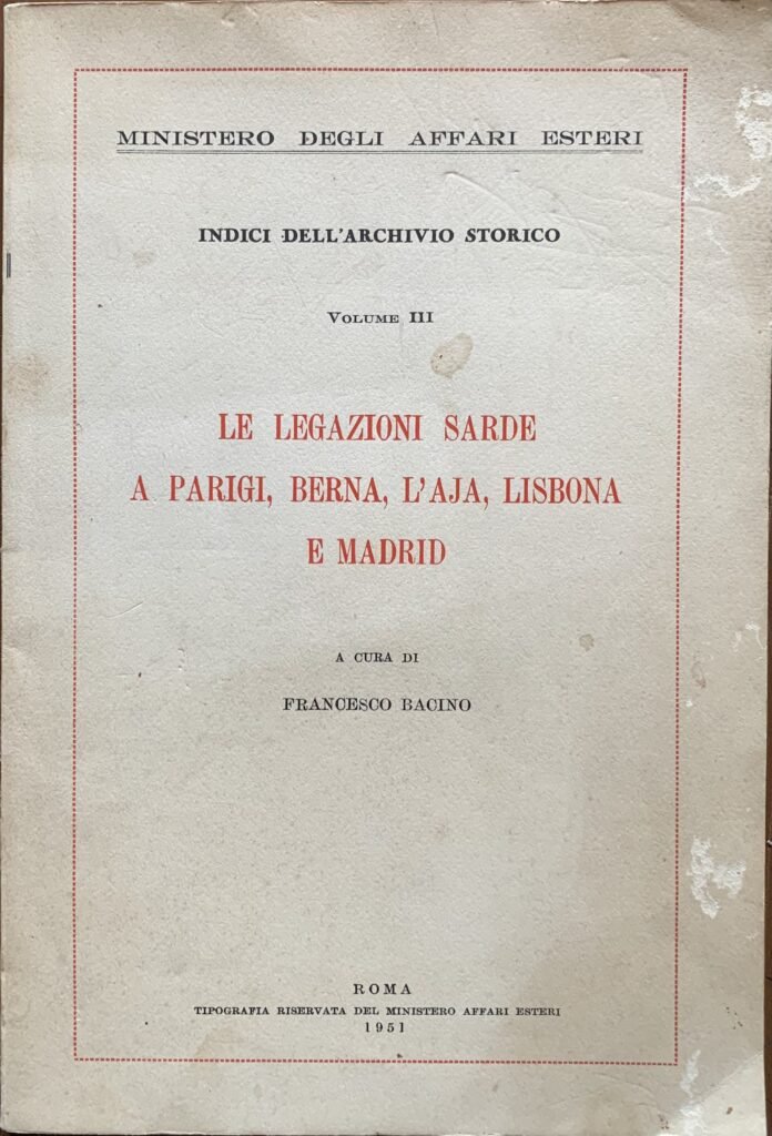 Le legazioni sarde a Parigi, Berna, l'Aja, Lisbona e Madrid | Libri antichi e moderni | Francesco Bacino