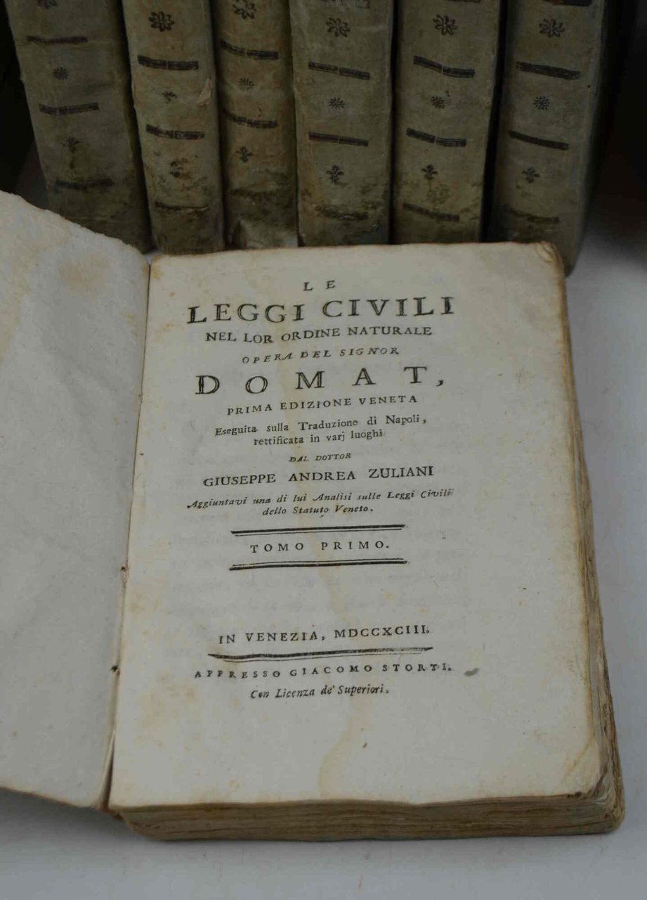 Le leggi civili nel lor ordine naturale... Prima edizione veneta eseguita sulla traduzione di Napoli, rettificata in varj luoghi dal dottor Giuseppe Andrea Zuliani aggiuntavi una di lui analisi sulle leggi civili dello Statuto veneto | Libri antichi e moderni | DOMAT JEAN.