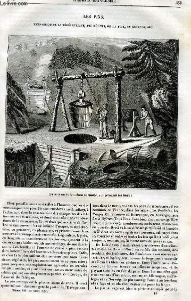 Le magasin universel - tome troisième - Livraison n°45 - Les pins - Extraction de la thérébentine, des résines , de la poix, du goudron, etc. | Libri antichi e moderni | Collectif.