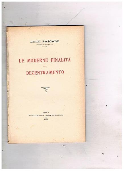 Le moderne finalità del decentramento (per risolvere i problemi sociali e del meridione). | Libri antichi e moderni | Pascale Luigi.